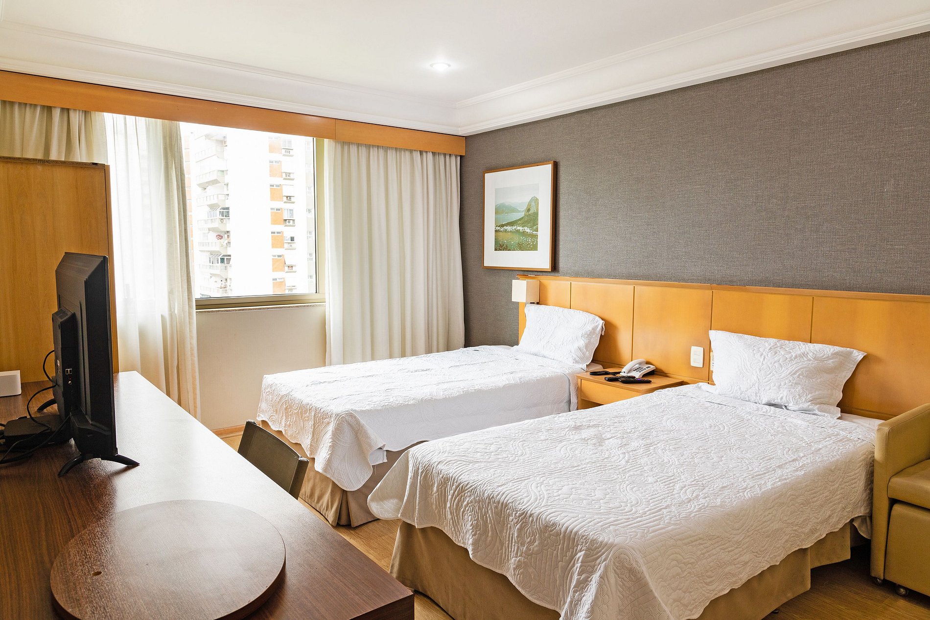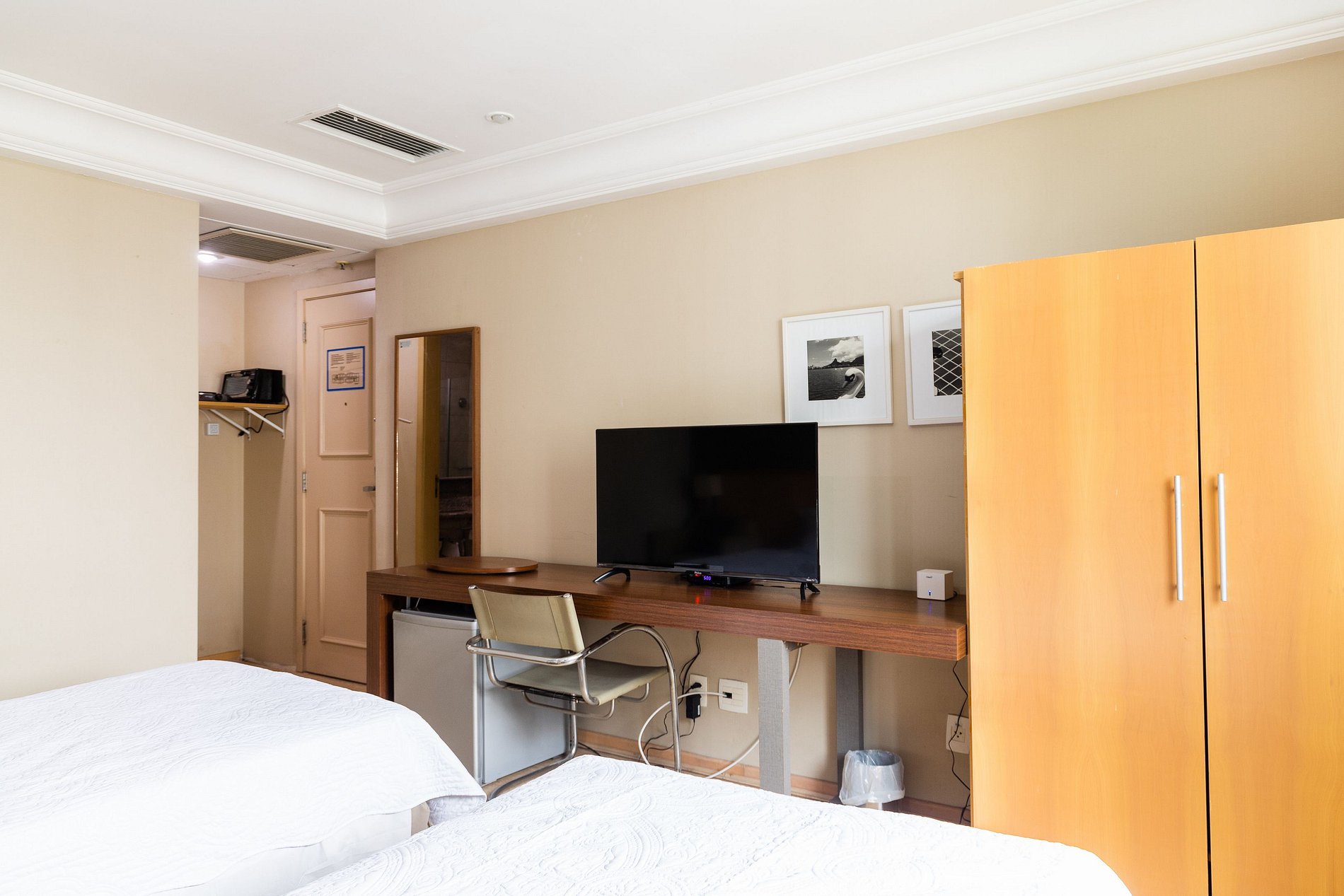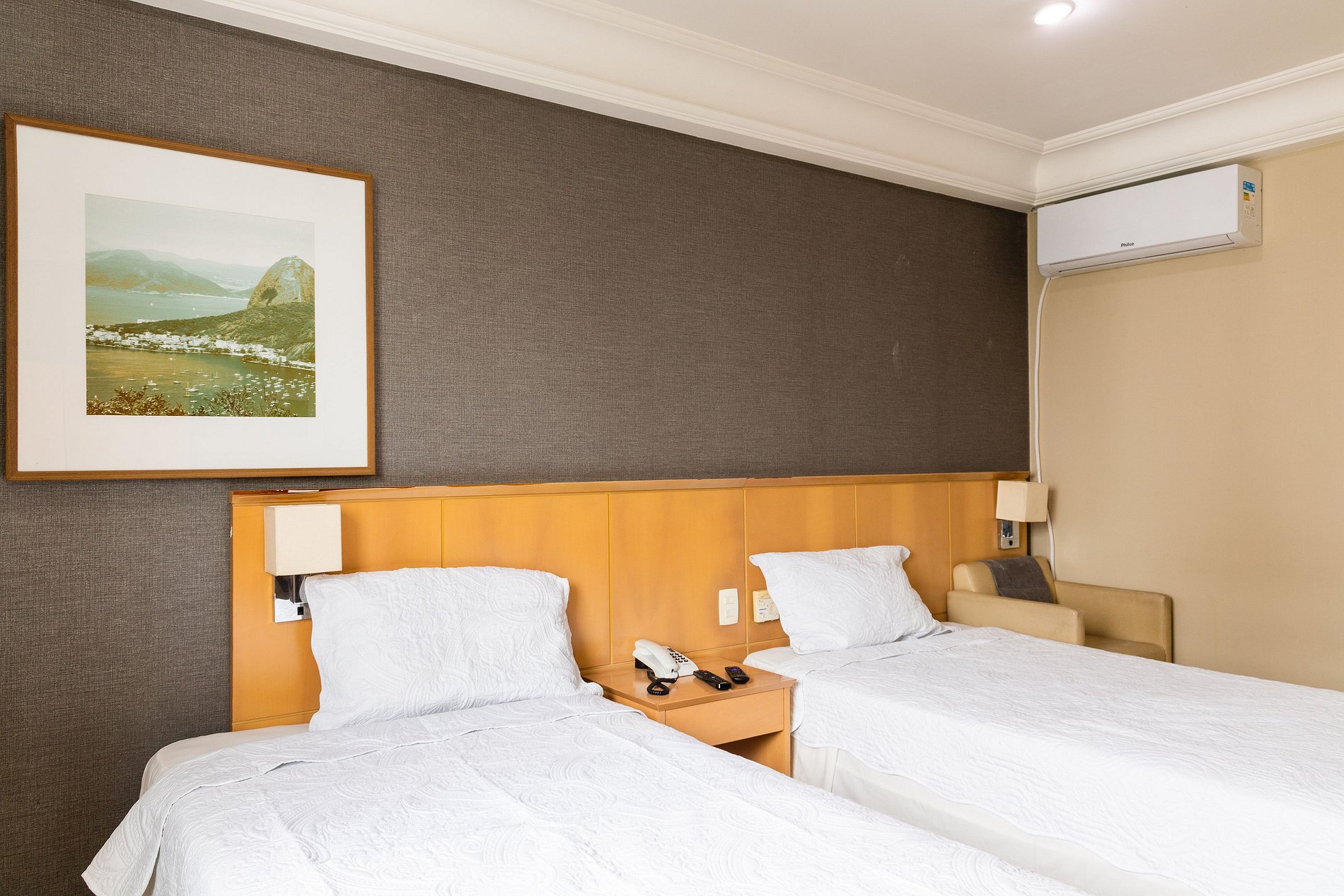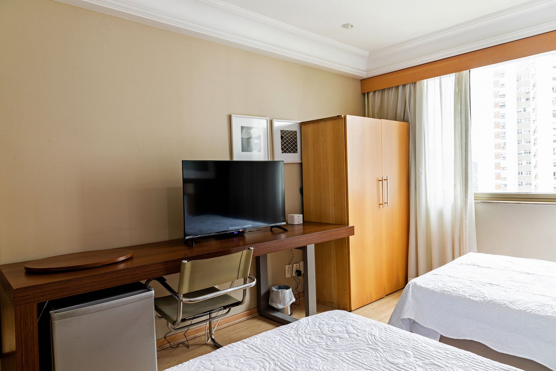 Neste espaço temos capacidade de hospedar até 3 hóspedes. Como pode-se ver nas fotos, o quarto possui duas camas de solteiro king bem grandes para receber 2 hóspedes. Caso seja da preferência do hóspede, podemos unir as duas camas para formar uma cama de casal (assim como muitos hotéis fazem).