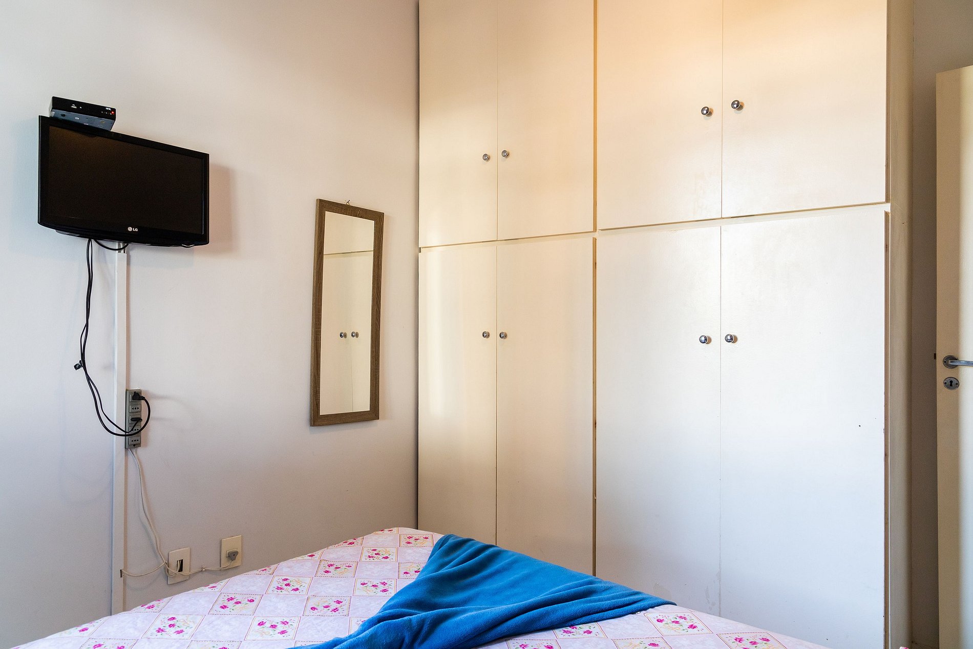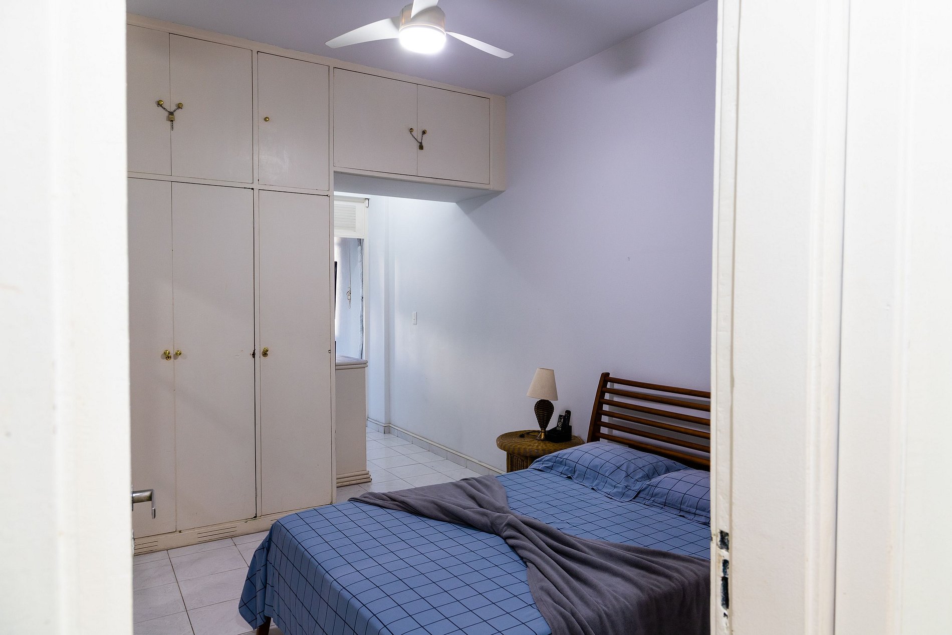 No apartamento, temos dois quartos com uma cama de casal em cada um. Os dois quartos possuem vista para Praça Antero de Quental, ar-condicionado, tv e ventilador de teto. O quarto maior possui tv a cabo (Claro NET) com pacote básico de canais e o outro recebe a antena interna coletiva do edifício, oferecendo os canais regulares da tv aberta. É com estes quartos que contamos para acomodar confortavelmente 4 pessoas. Para que fosse possível acomodar mais duas pessoas (totalizando o máximo de 6 pessoas), adaptamos o antigo quarto de serviço com uma beliche. Este quarto adaptado com a beliche possui ventilador de teto, mas não possui ar-condicionado, nem tv a cabo e nem janela.