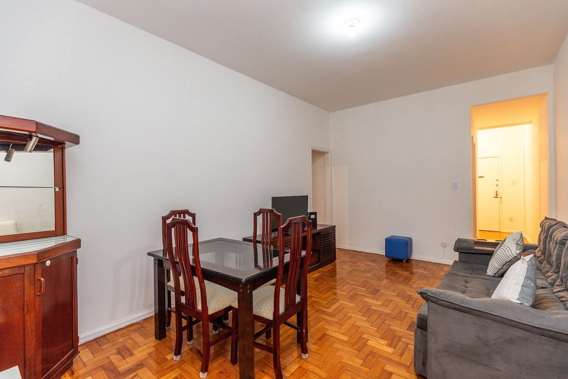 O apartamento acomoda confortavelmente até 4 hóspedes nos dois quartos. Para um quinto hóspede, disponibilizamos um colchonete de enrolar da Ortobom.