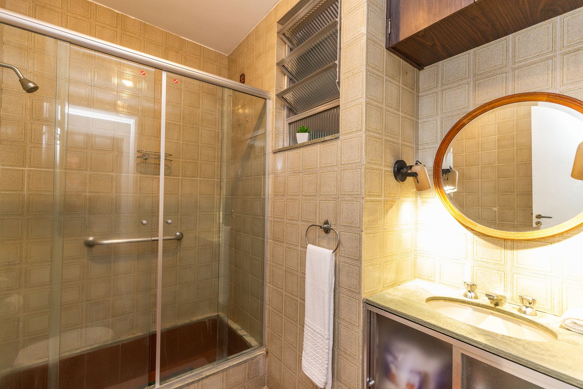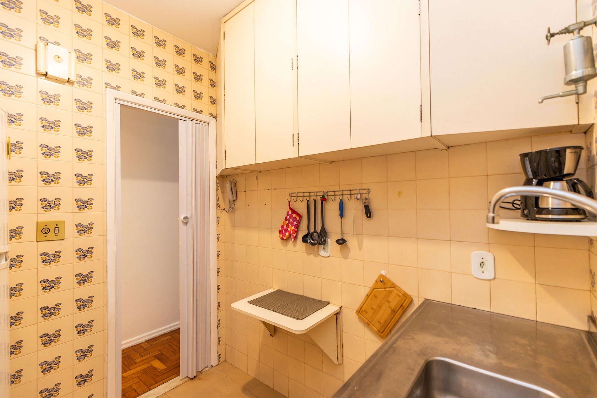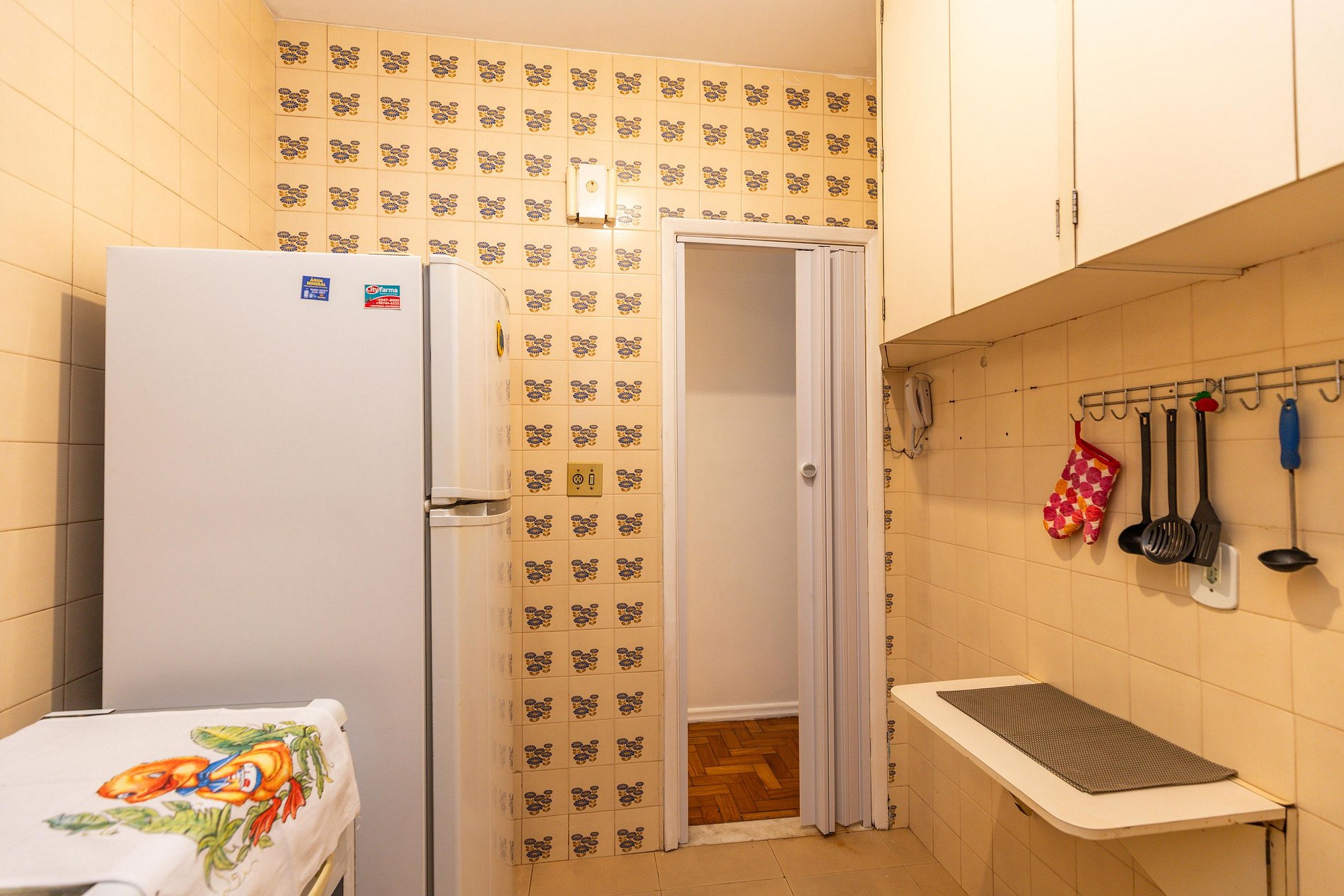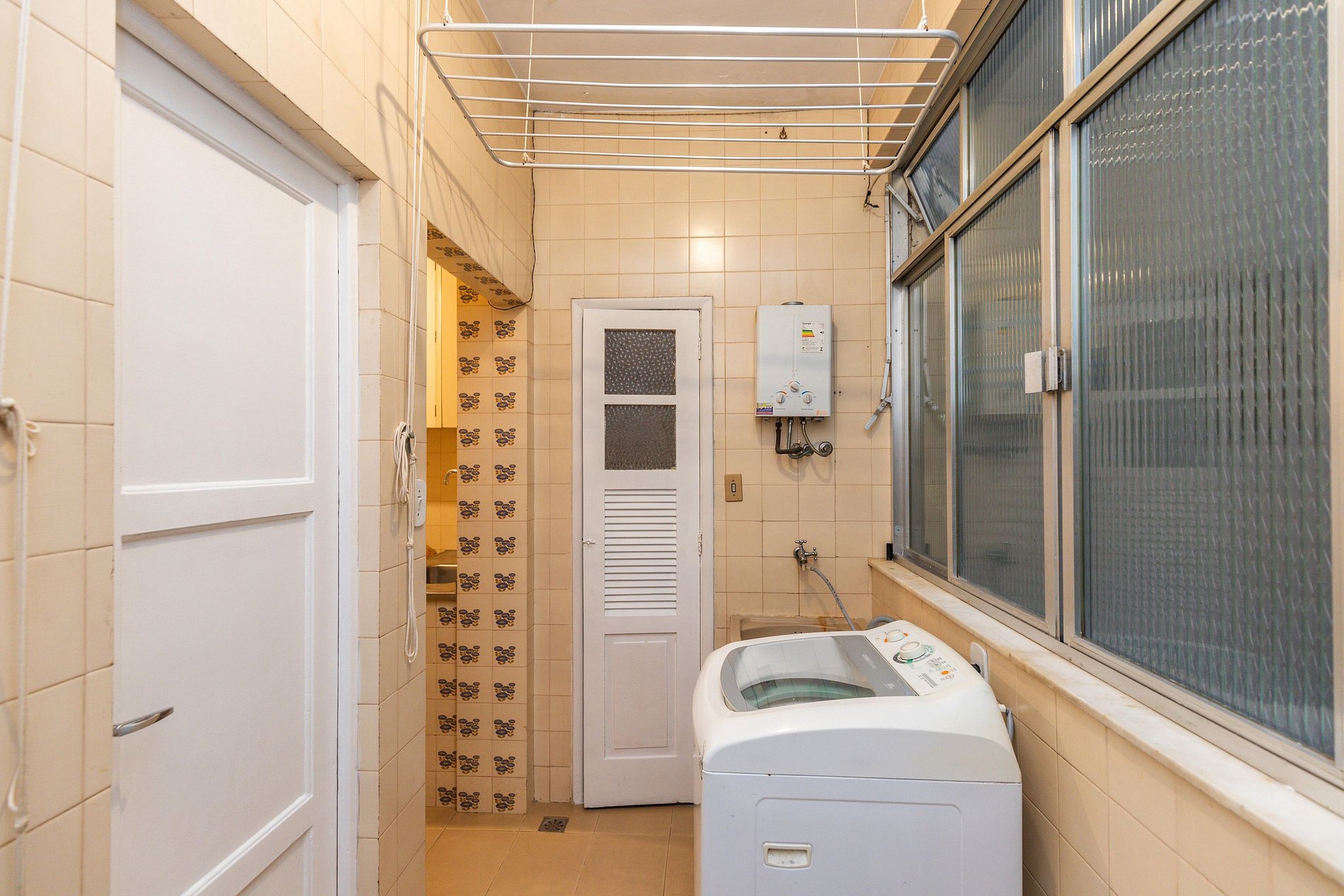 Além do banheiro social, há um banheiro de serviço que funciona como lavabo.
