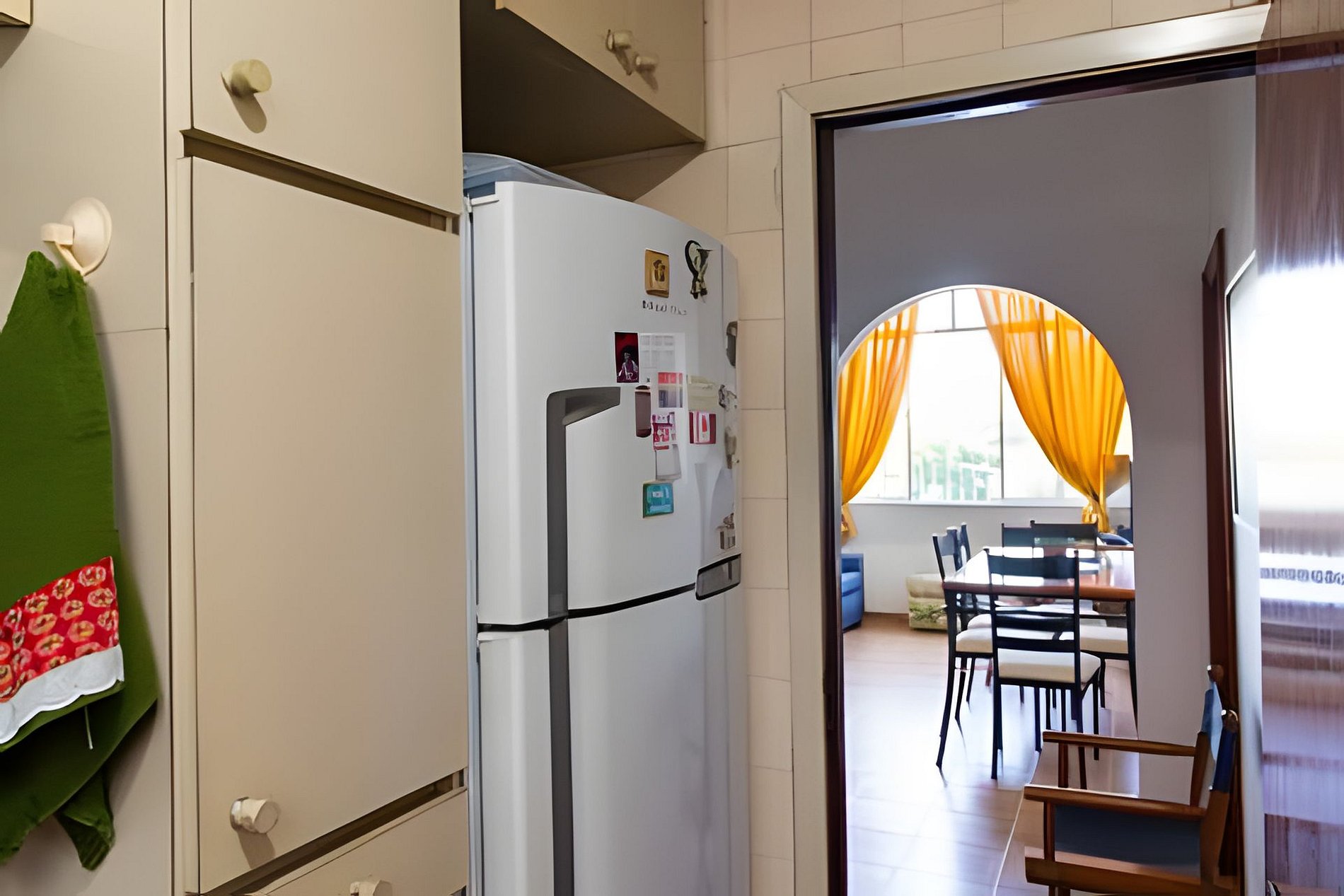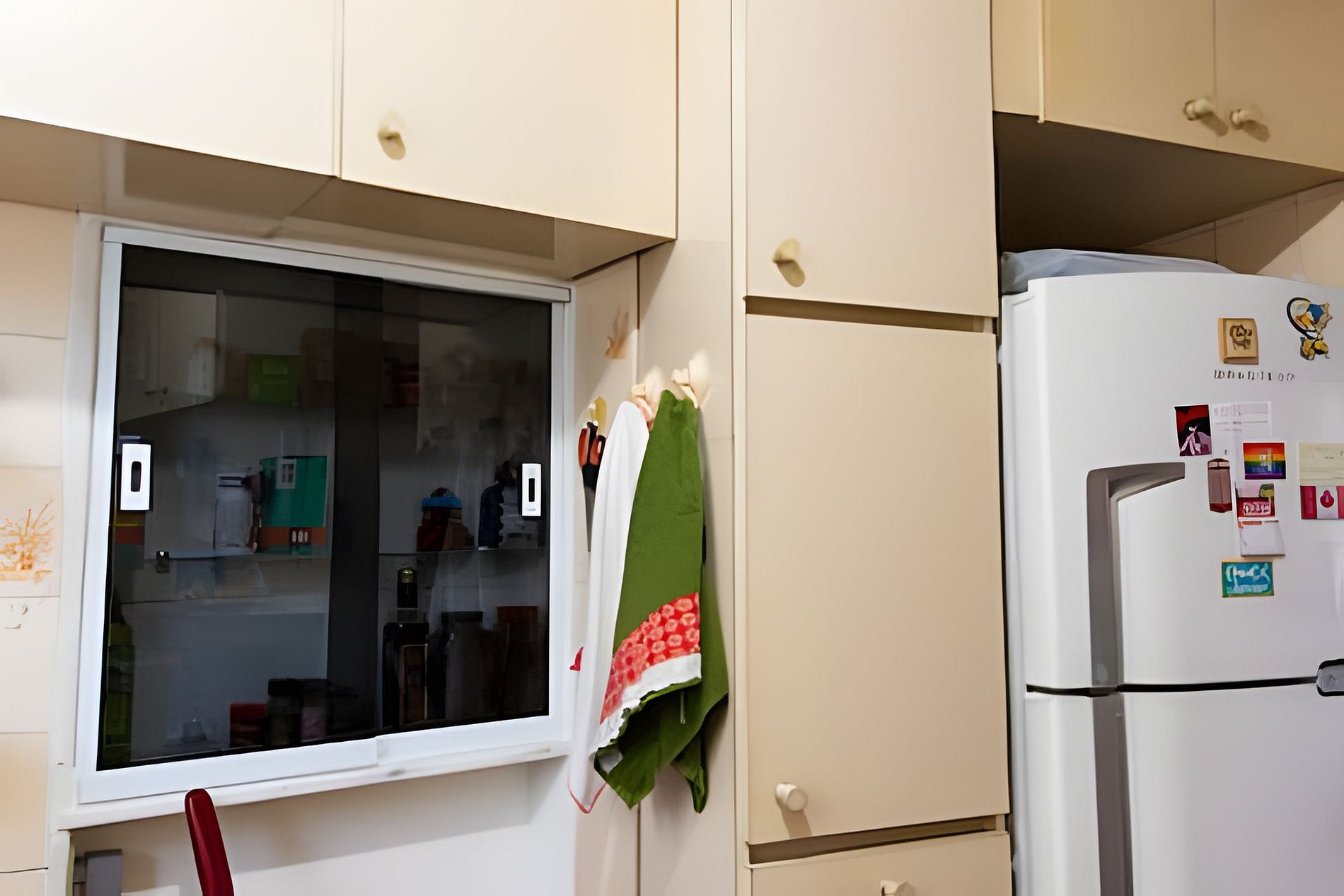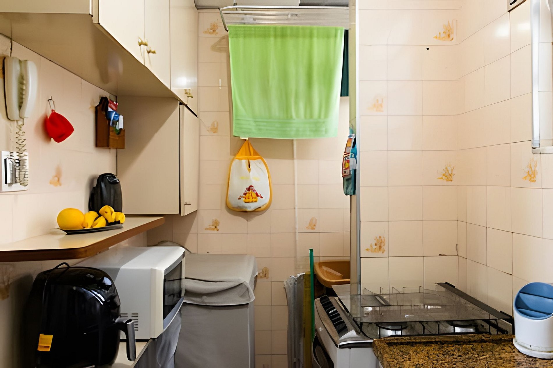 A cozinha está parcialmente disponível: é possível usar a geladeira e o micro-ondas apenas, mas cozinhar no fogão não.