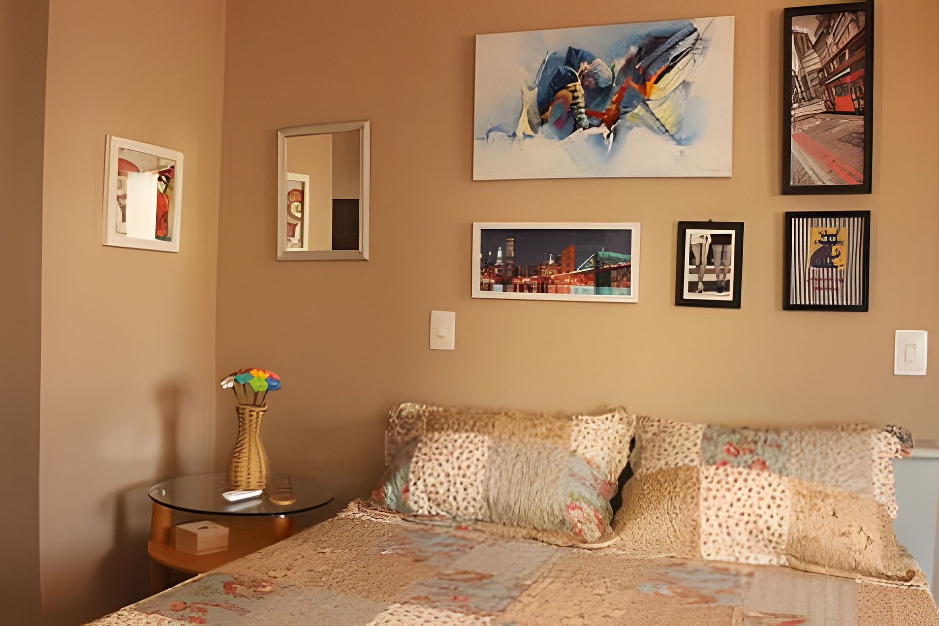 Totalmente equipado, possui todos os utensílios necessários para comodidade e conveniência dos hóspedes. A cama de casal tem um colchão anatômico e o sofá-cama que temos, além de lindo, comporta facilmente mais dois adultos, chegando assim ao total de quatro o número de hóspedes que o grupo pode ter.