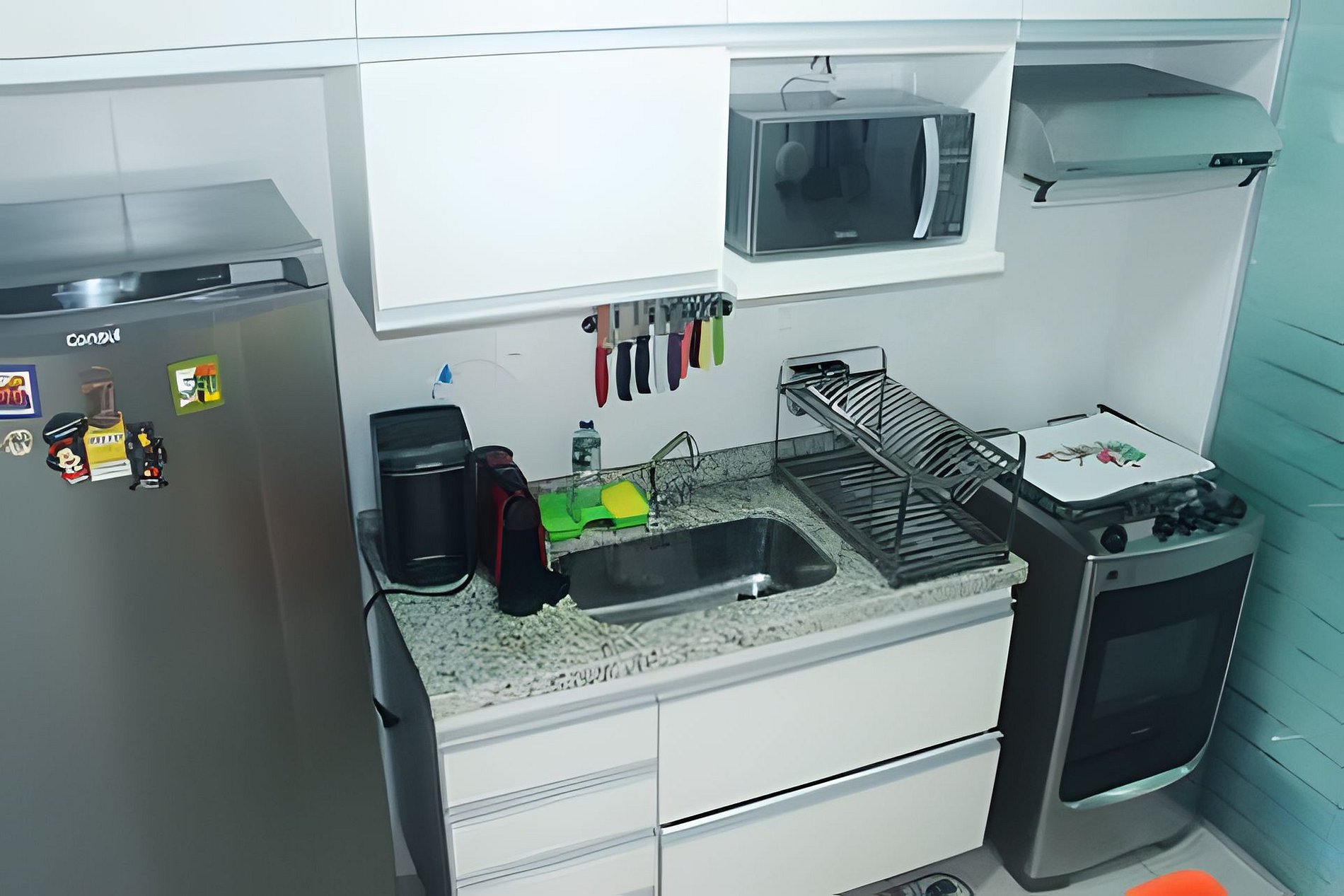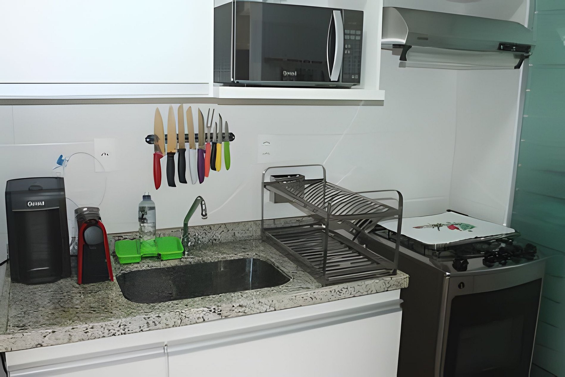 O apartamento foi decorado com carinho para aguçar o sentido e a criatividade de quem o está habitando. Está dentro de um novíssimo condomínio, com piscina, portaria 24 horas, que contrasta de maneira muito intrigante com o chamado "Rio Antigo", característica marcante da Lapa com o predomínio da arquitetura eclética portuguesa.