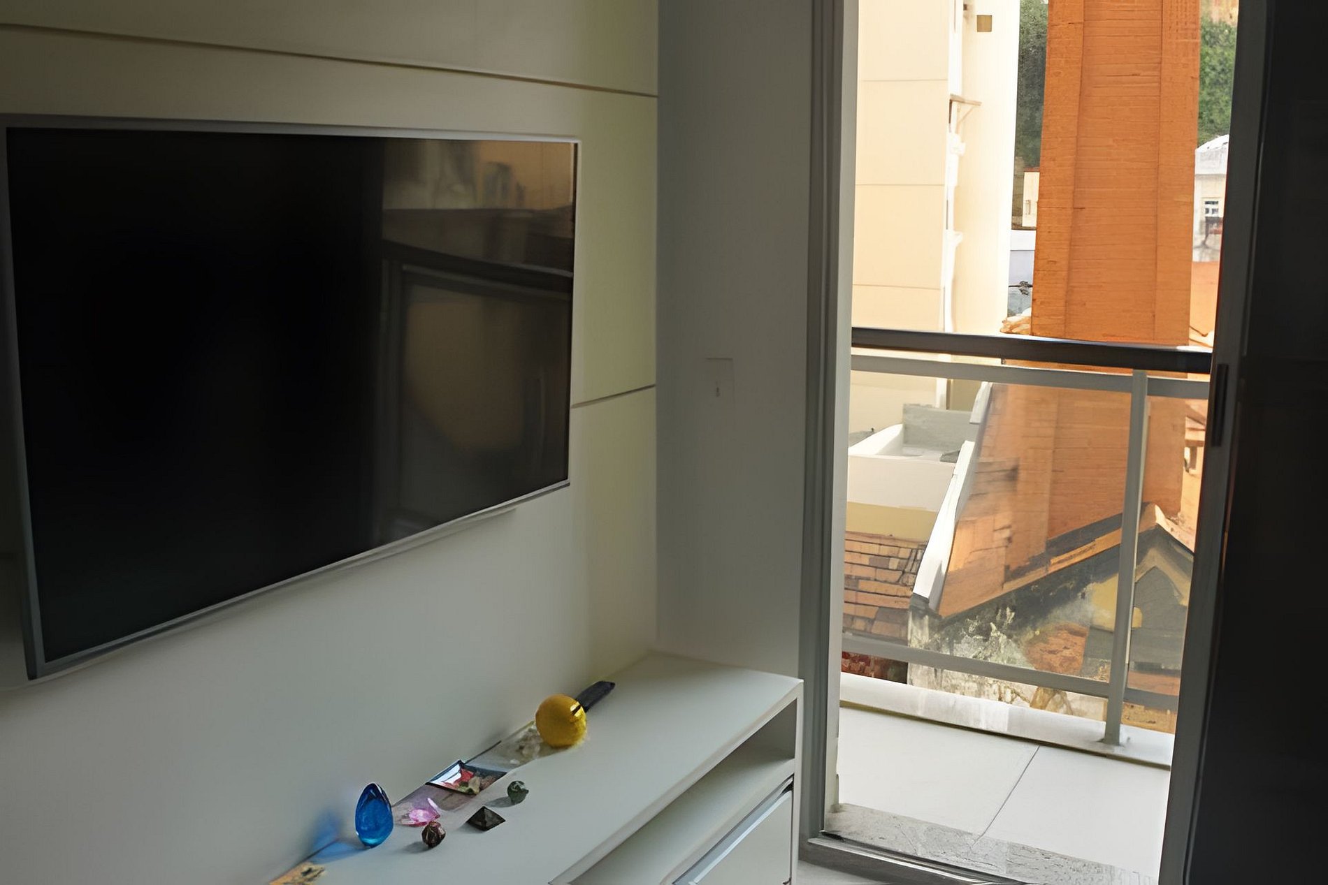 A sala possui uma tv Smart, possibilitando aos hóspedes acessarem suas séries e filmes preferidos na Netflix, Youtube ou demais aplicativos de streaming, mas não possuímos os canais regulares de tv aberta, nem na sala e nem no quarto.