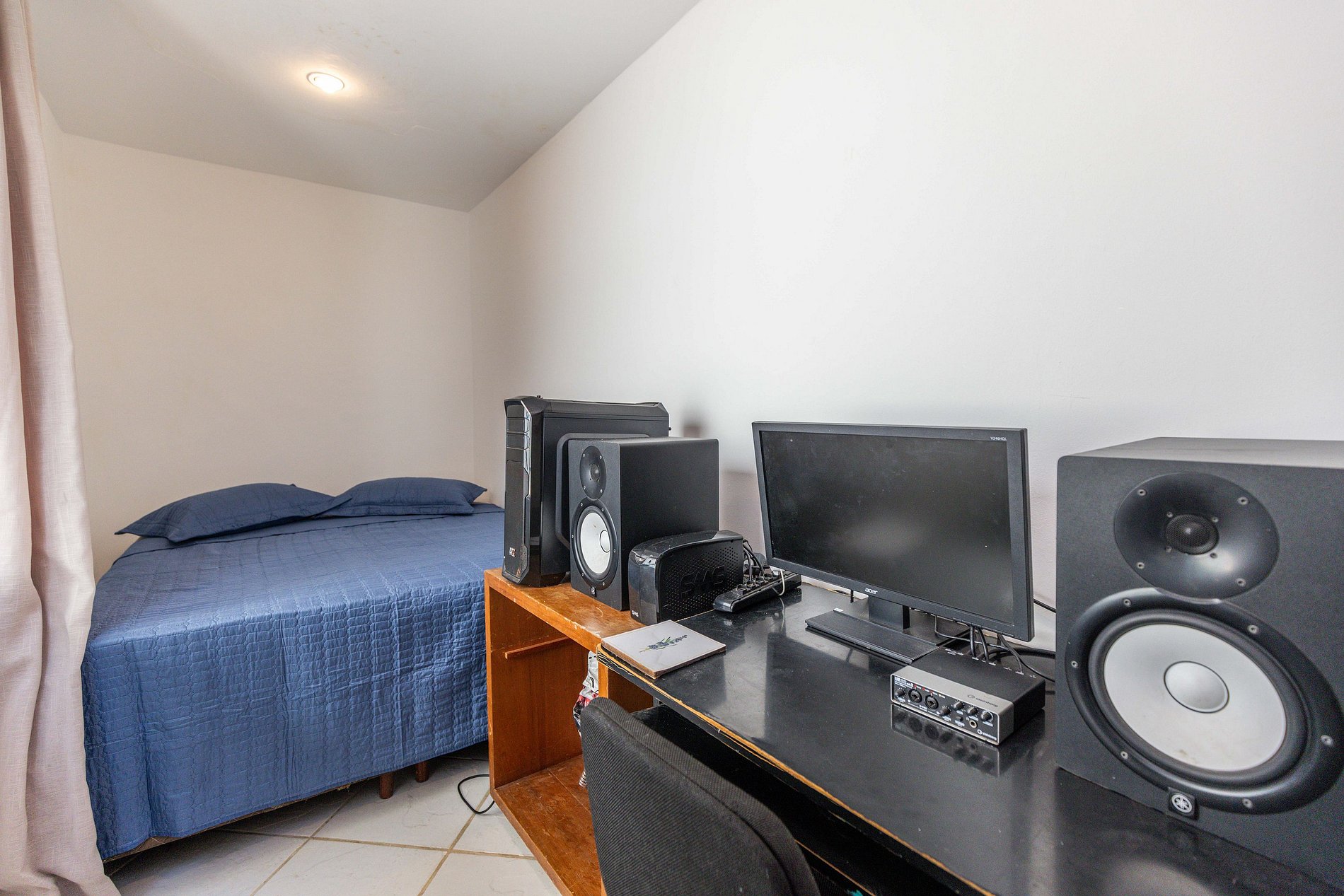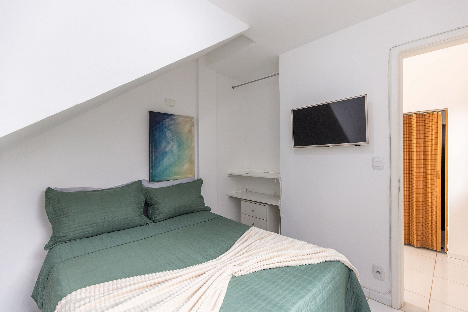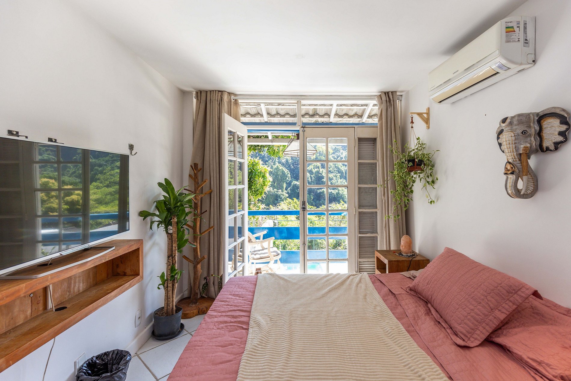 O último quarto é o único que não possui ar condicionado. Mas podem acreditar que é fresco porque estar situado na montanha e rodeado pela floresta propicia um micro clima único na casa. Este quarto possui duas camas de solteiro que, unidas ou não, acomodam mais 2 hóspedes e, desta forma, chegamos ao nosso número máximo de 10 hóspedes.