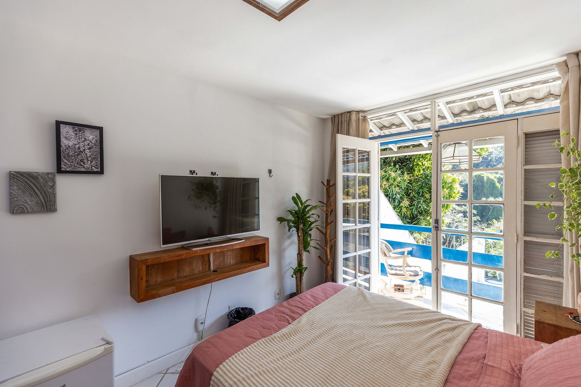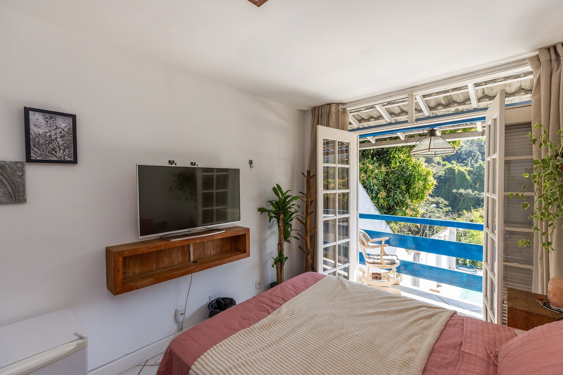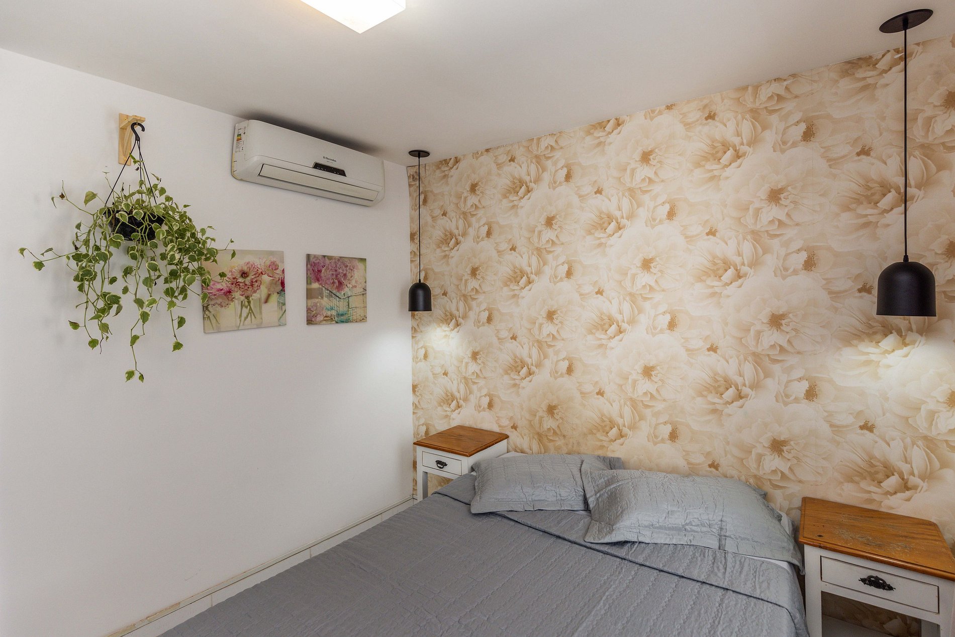 O "quarto das flores", decorado com papel de parede florido, conta com ar condicionado e televisão conectada com os canais regulares da tv aberta. Possuindo cama de casal, acomoda mais 2 hóspedes.