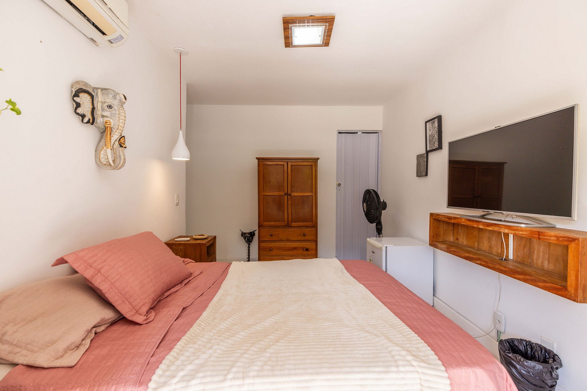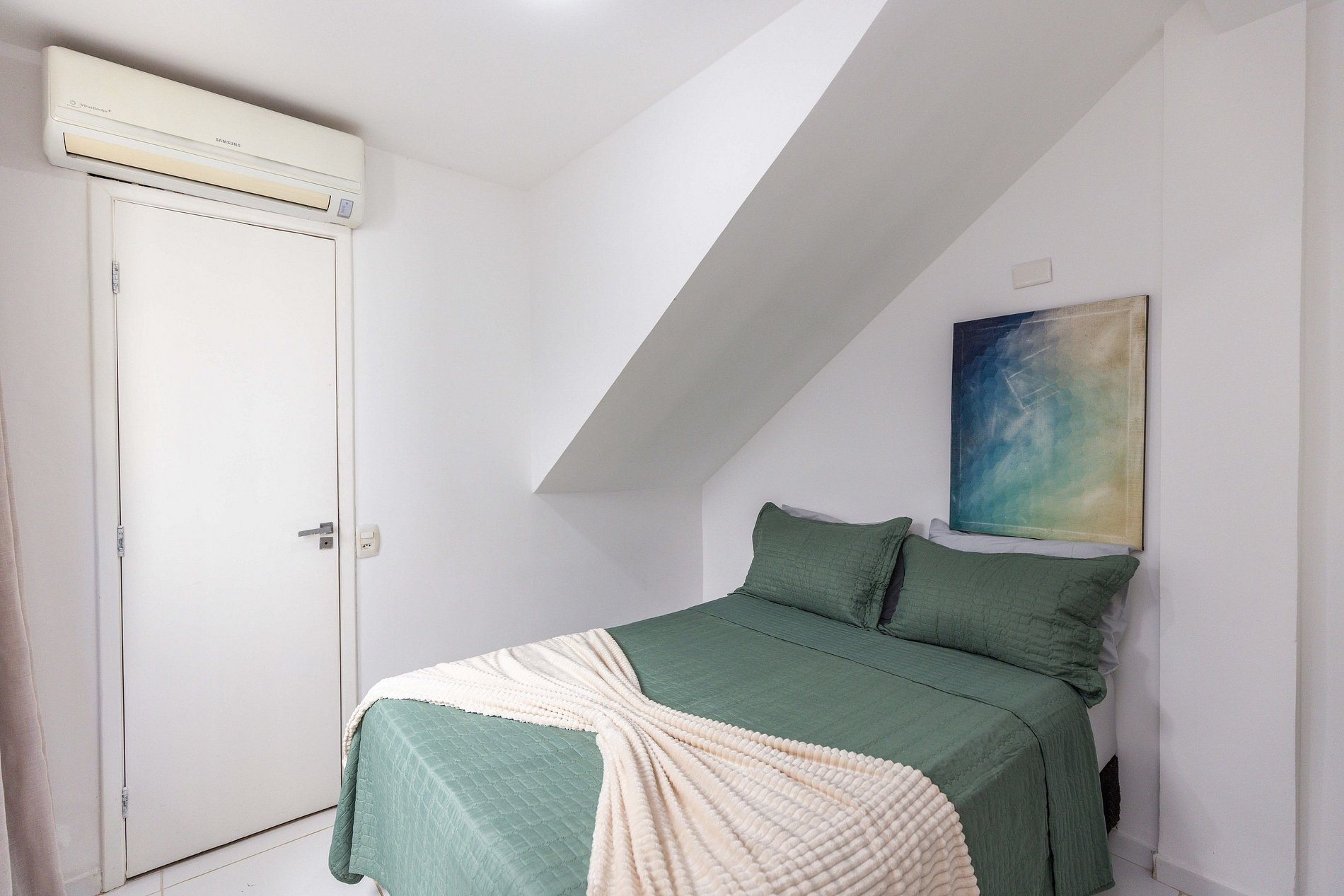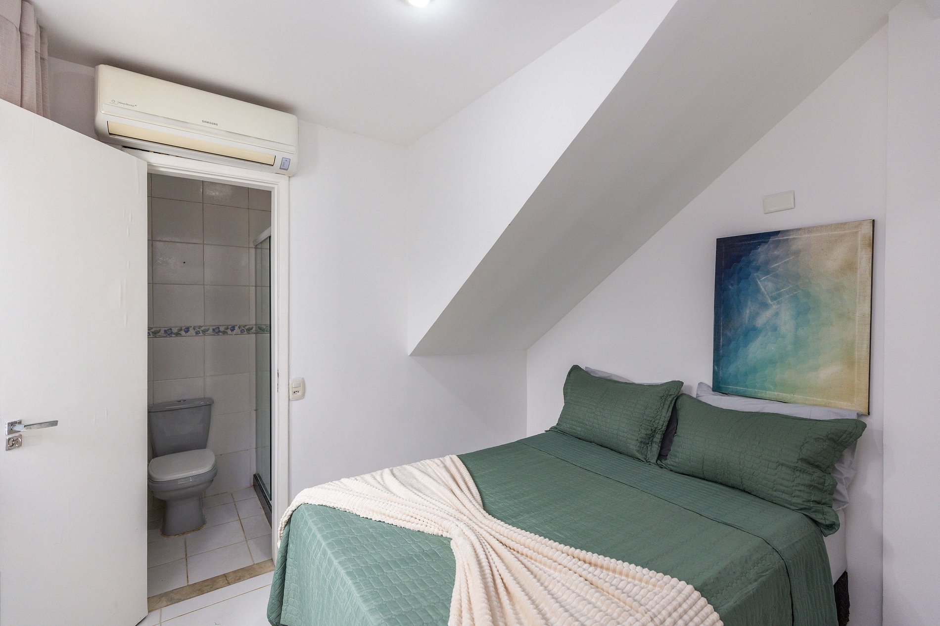 Há uma terceira suíte no andar térreo que também conta com ar condicionado e acomoda mais 2 hóspedes em sua cama de casal.
