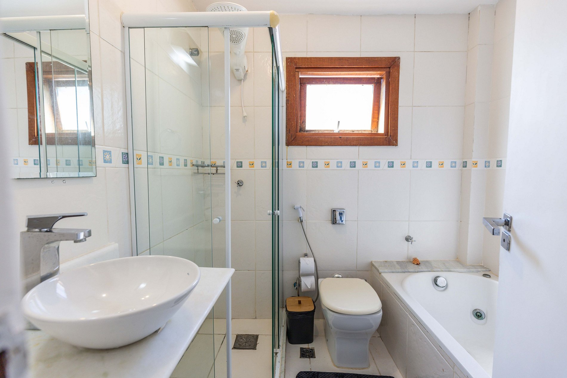 Dois desses quartos na verdade são duas suítes com banheira de hidromassagem e varanda. Essas duas suítes possuem cama de casal e acomodam 4 hóspedes. Uma dessas suítes conta com tv à cabo e a outra com uma Smart Tv. As duas possuem ar condicionado.