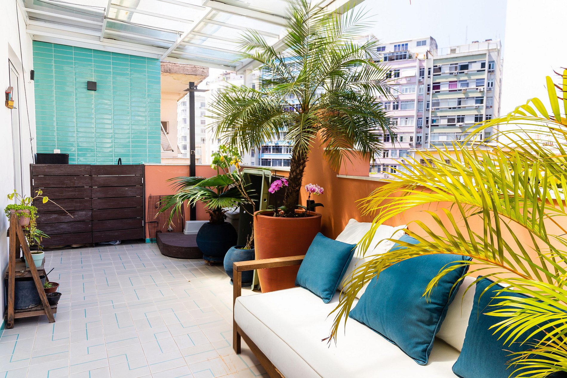 Hospede-se nesta charmosa cobertura recém-reformada na Rua Barata Ribeiro. A poucos passos da Praia de Copacabana, restaurantes e bares, oferece conforto e conveniência no coração do Rio. Este clássico quarto e sala acomoda até 4 pessoas fazendo uso do sofá cama da sala. Possui cozinha americana, varanda tropical e ambientes climatizados. Importante: após o elevador, é necessário subir um lance de escadas para acessar a cobertura. Leia a seguir a descrição completa.
