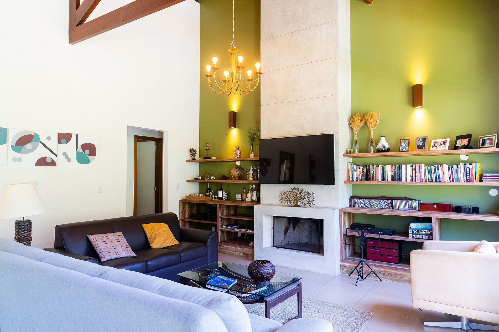 Ao entrar, você será recebido por uma ampla sala de estar, decorada com um toque colonial que alia sofisticação e aconchego. Este espaço é perfeito para relaxar, com: