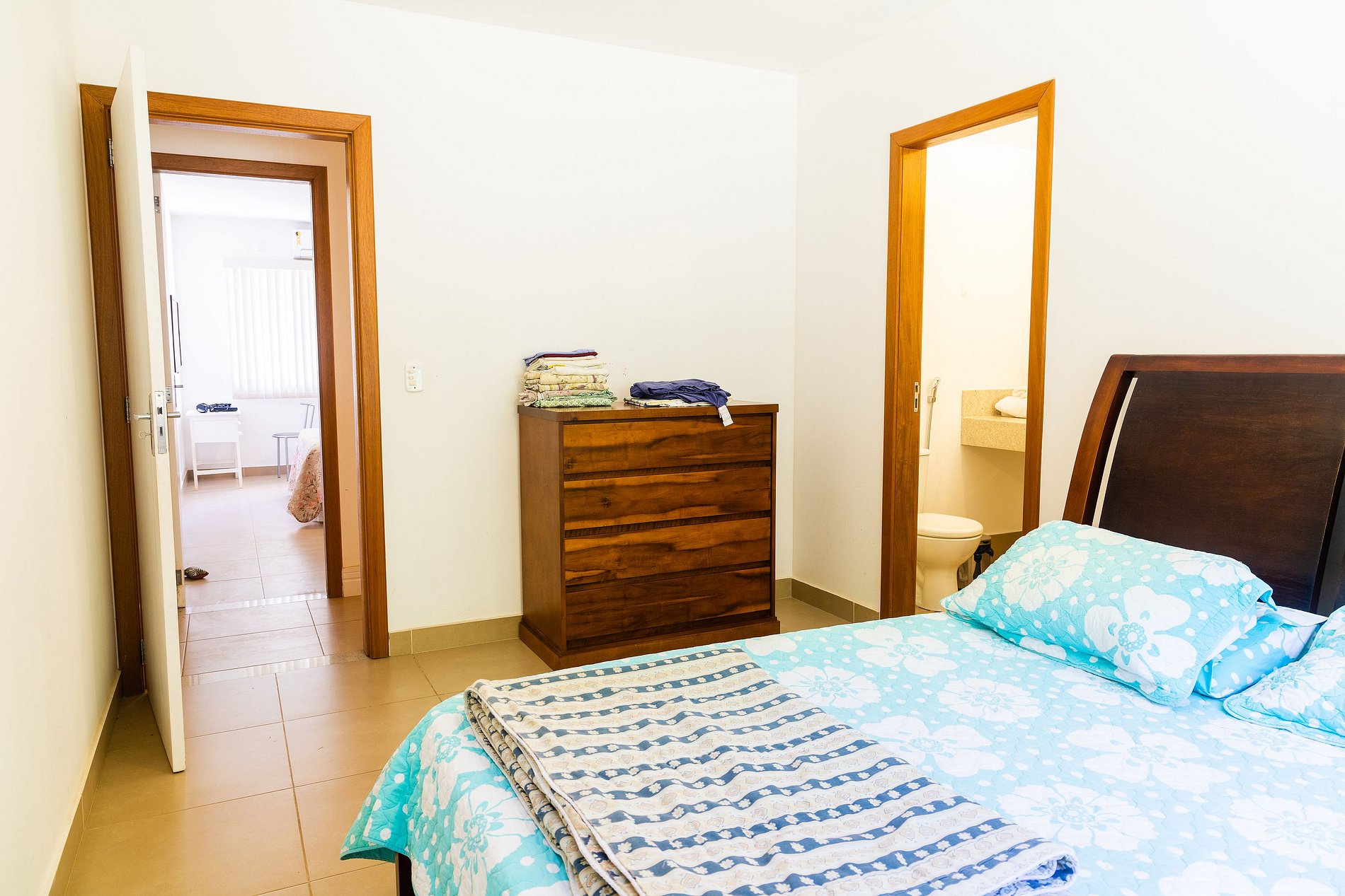 Com 4 suítes no andar térreo, a casa oferece acomodações perfeitas para grupos de até 8 pessoas. Cada suíte é equipada com cama de casal, ar-condicionado e banheiro privativo, garantindo o máximo em conforto e privacidade.
