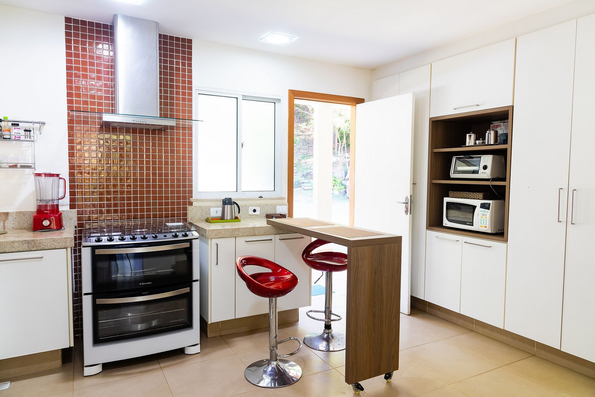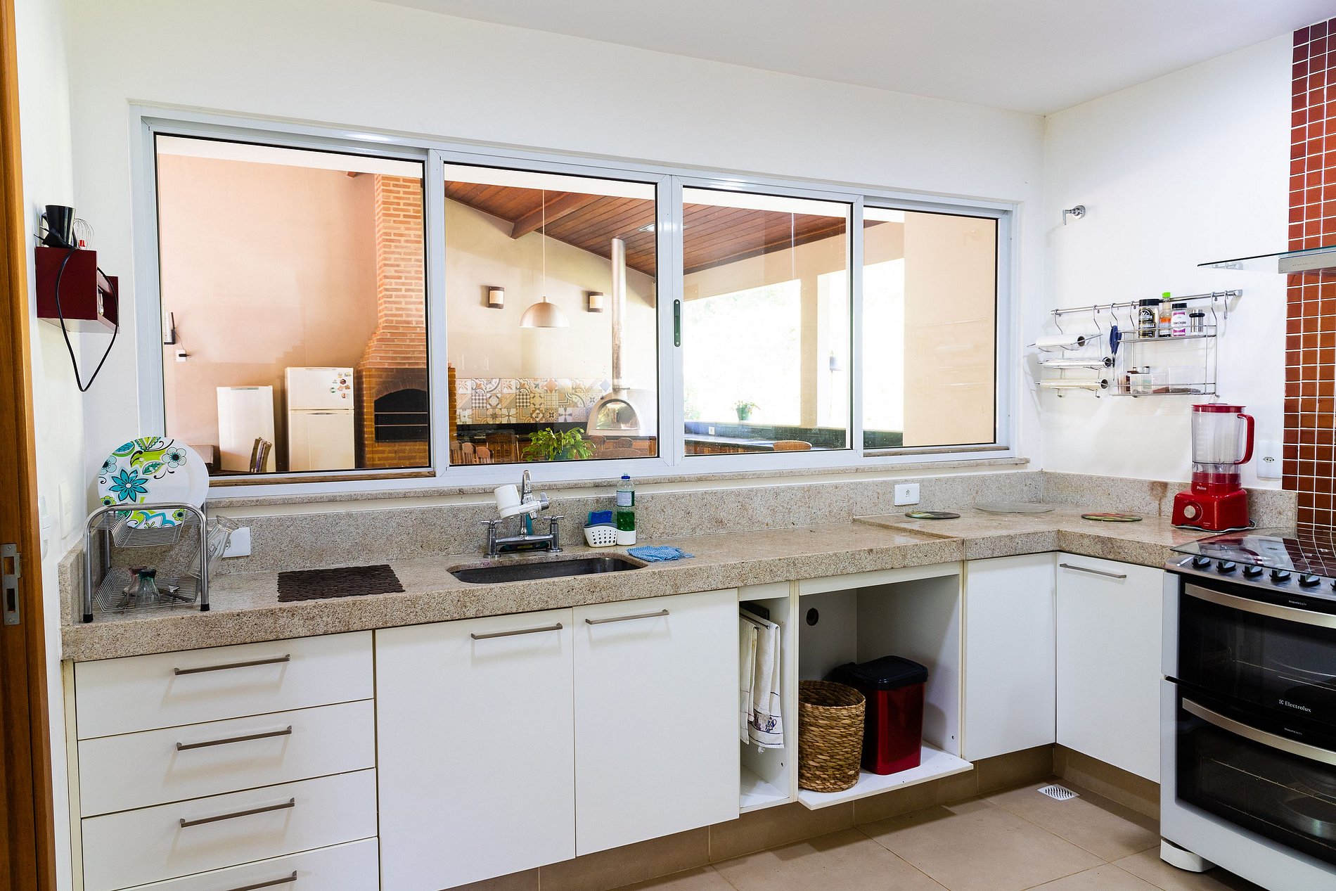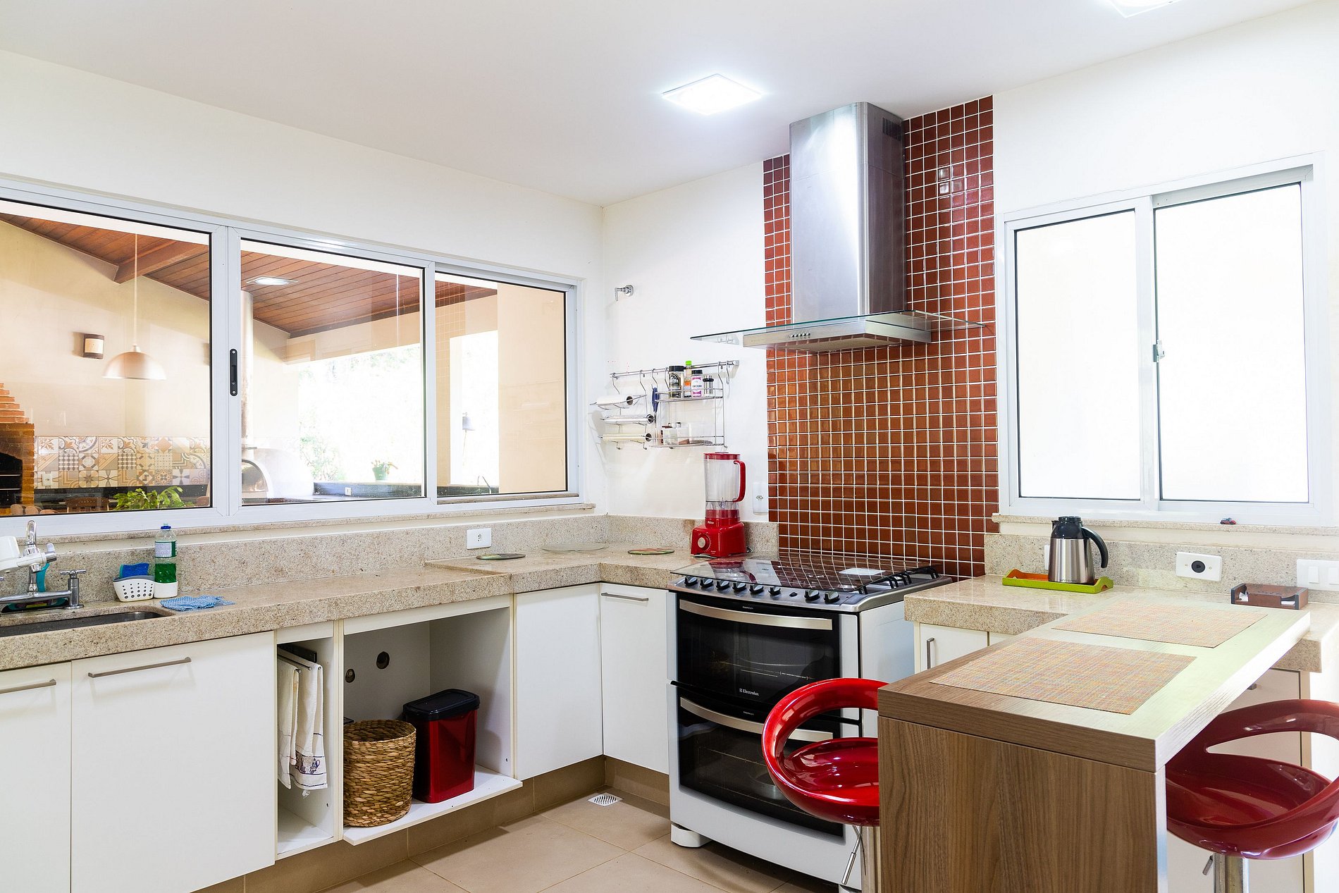 O destaque da casa é a área gourmet integrada ao ambiente interno, que oferece: