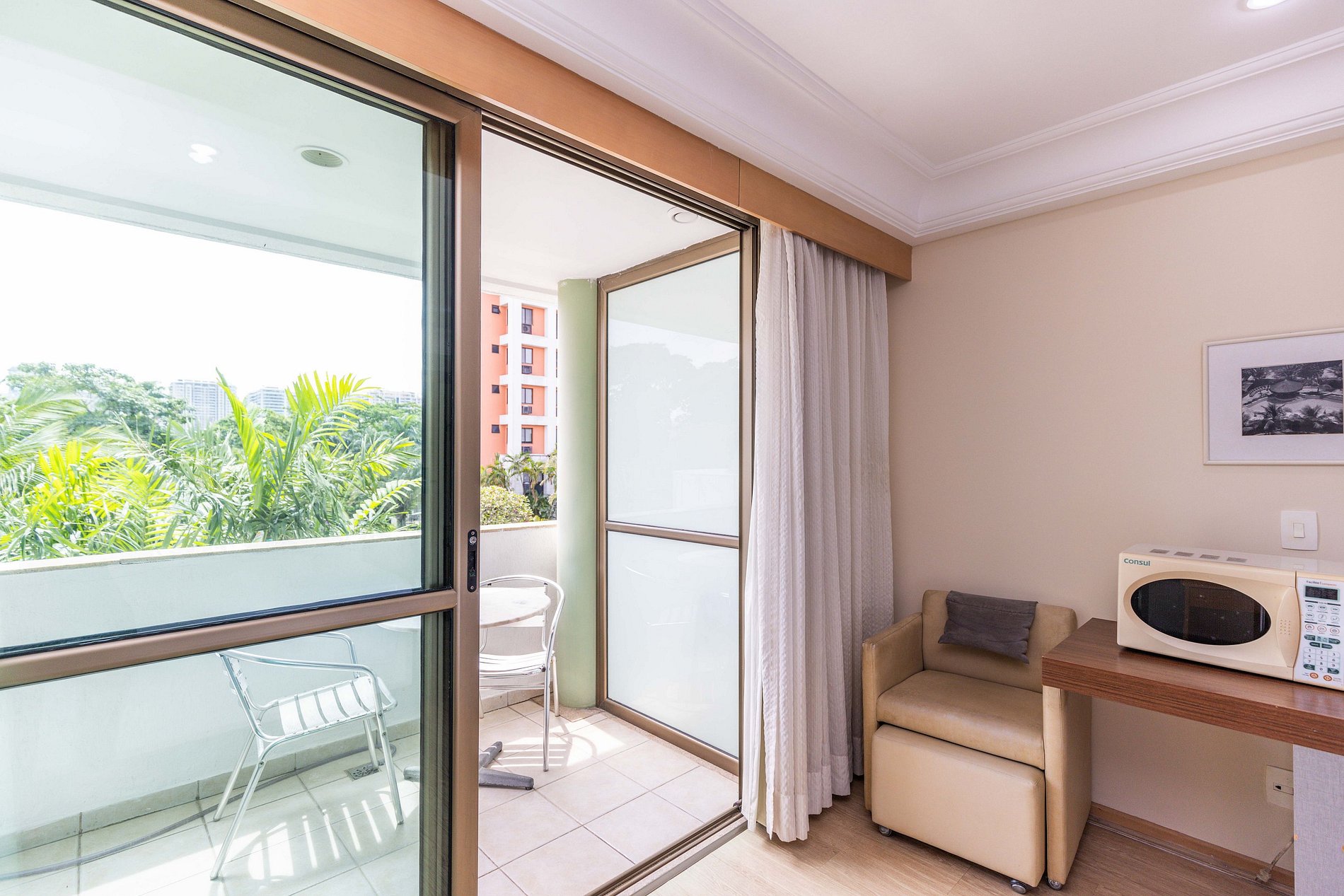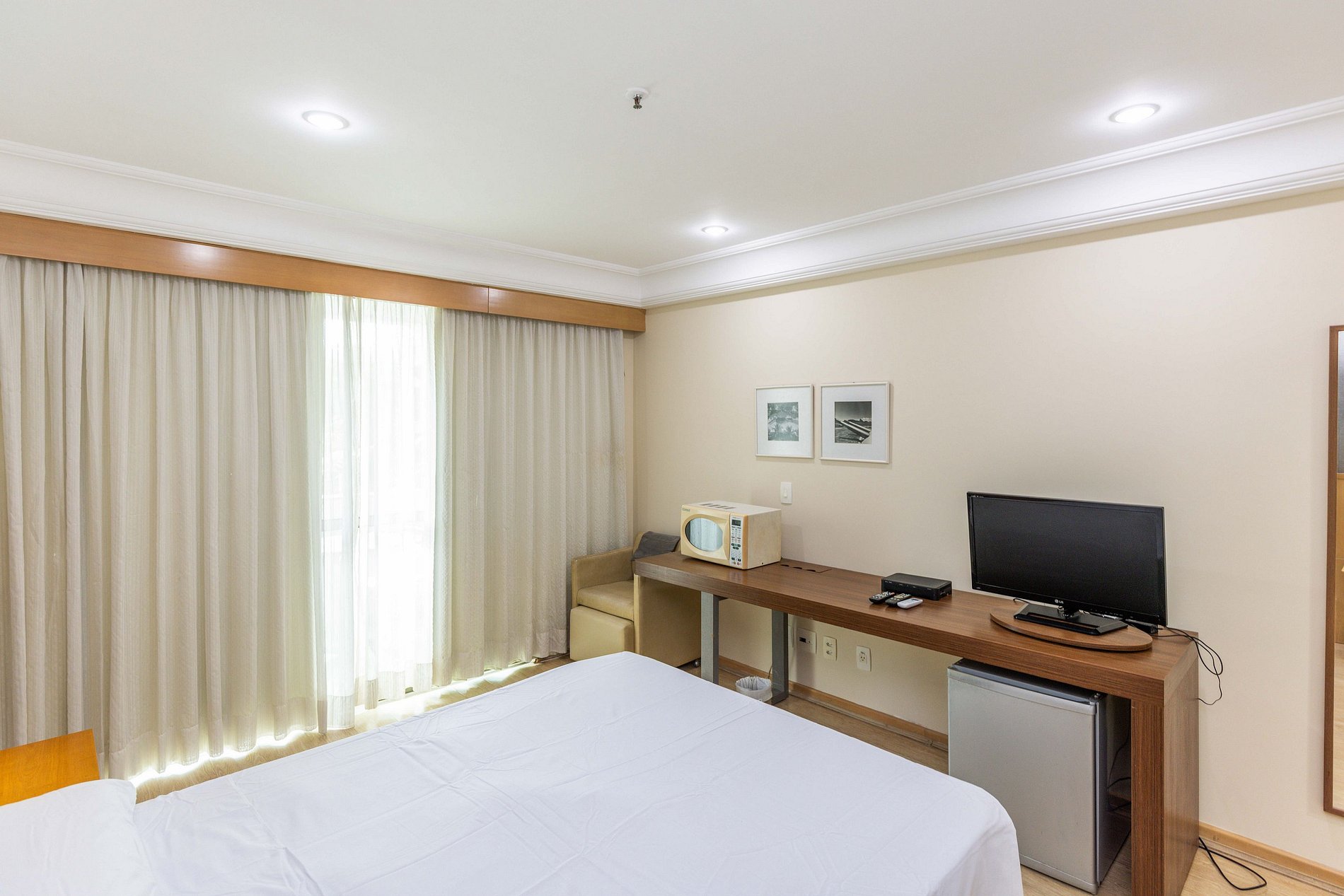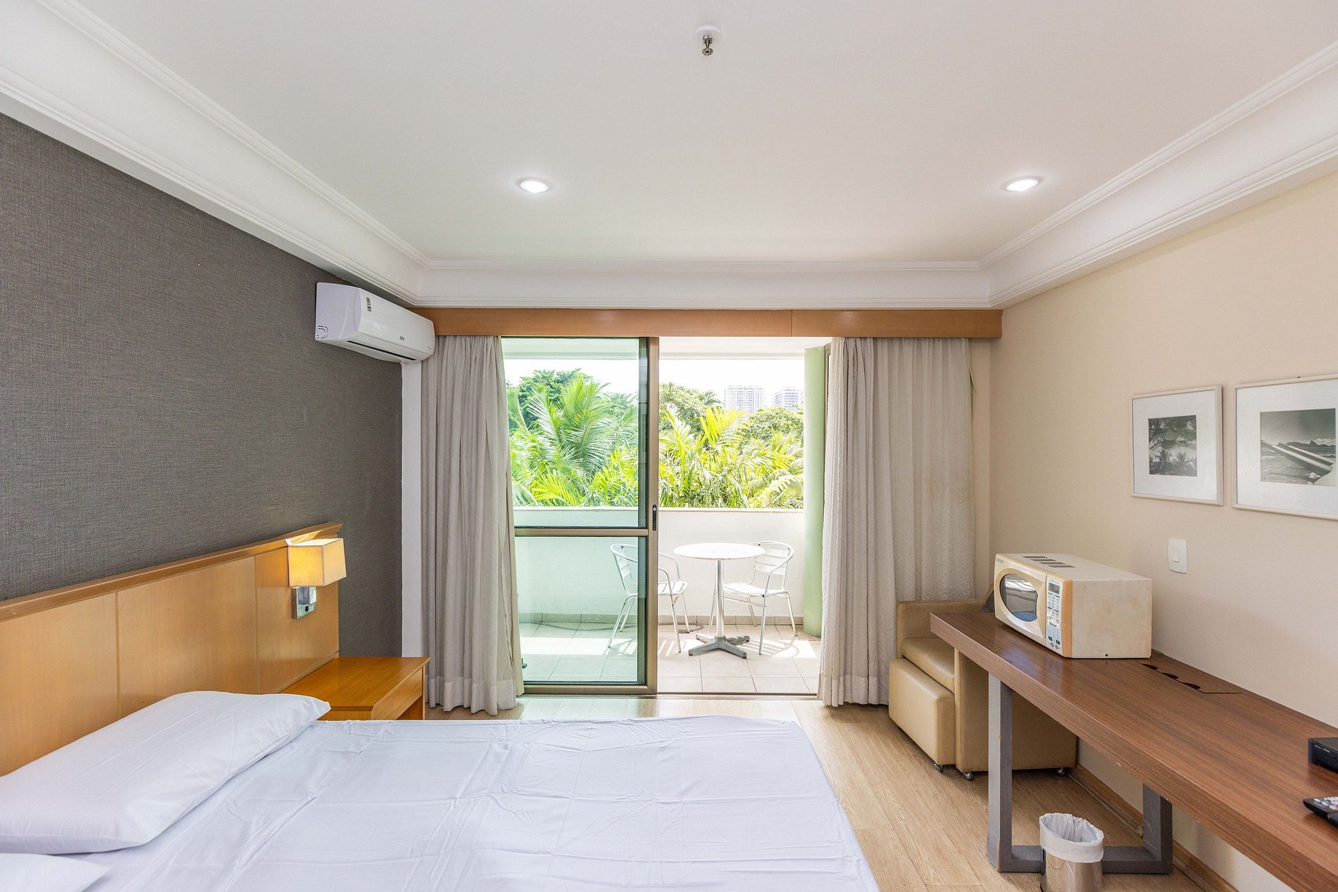 É possível alugar uma vaga no estacionamento particular que há no condomínio. A contratação do serviço, que é prestado pelo próprio flat, é feita diretamente na recepção no momento do checkin.