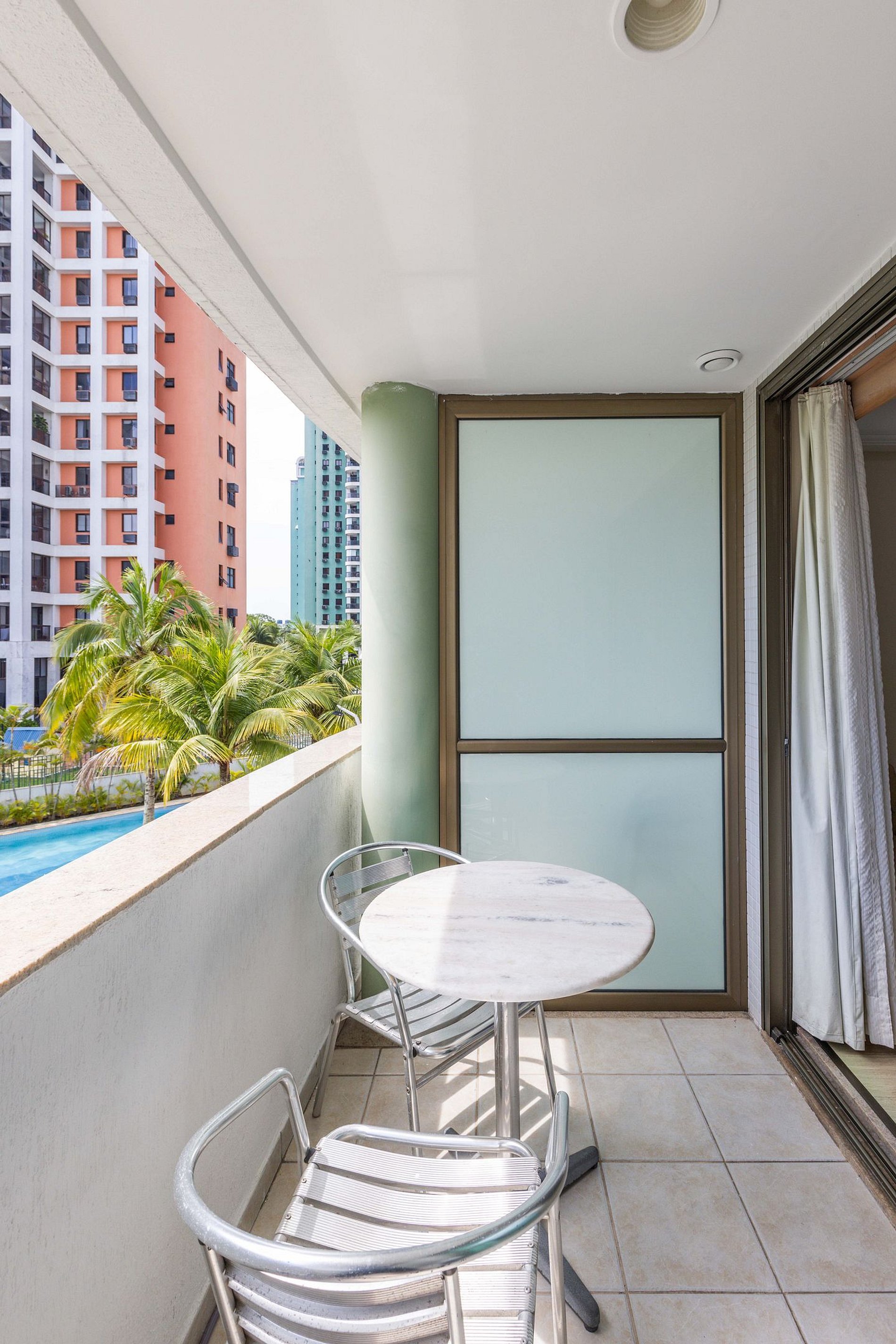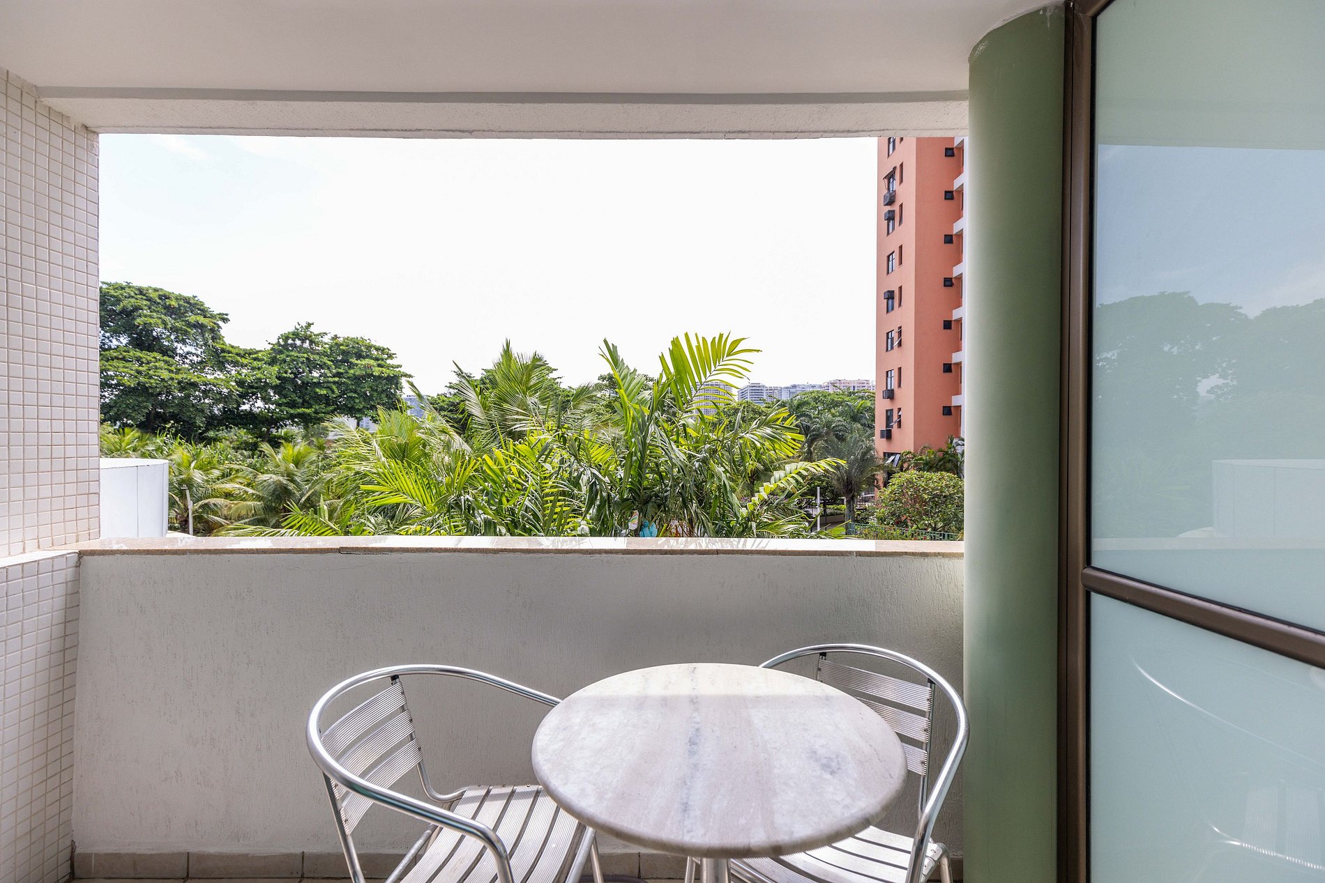 O apartamento está localizado no flat Mediterrâneo, que já foi o Hotel Transamérica, na Barra da Tijuca e, por isso, conta com uma estrutura completa para dar suporte e conforto aos hóspedes.