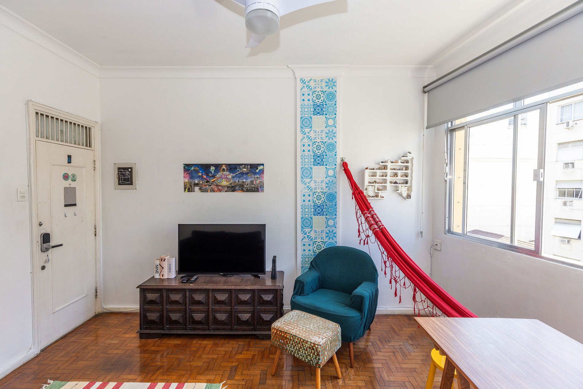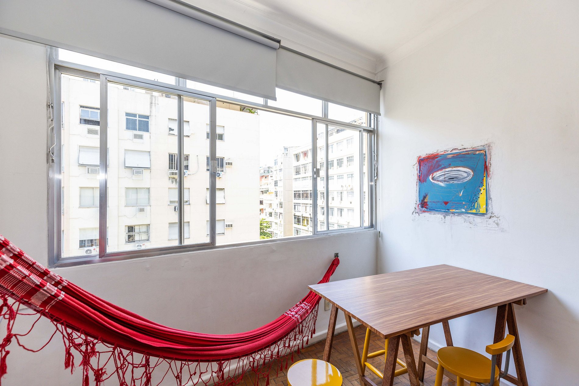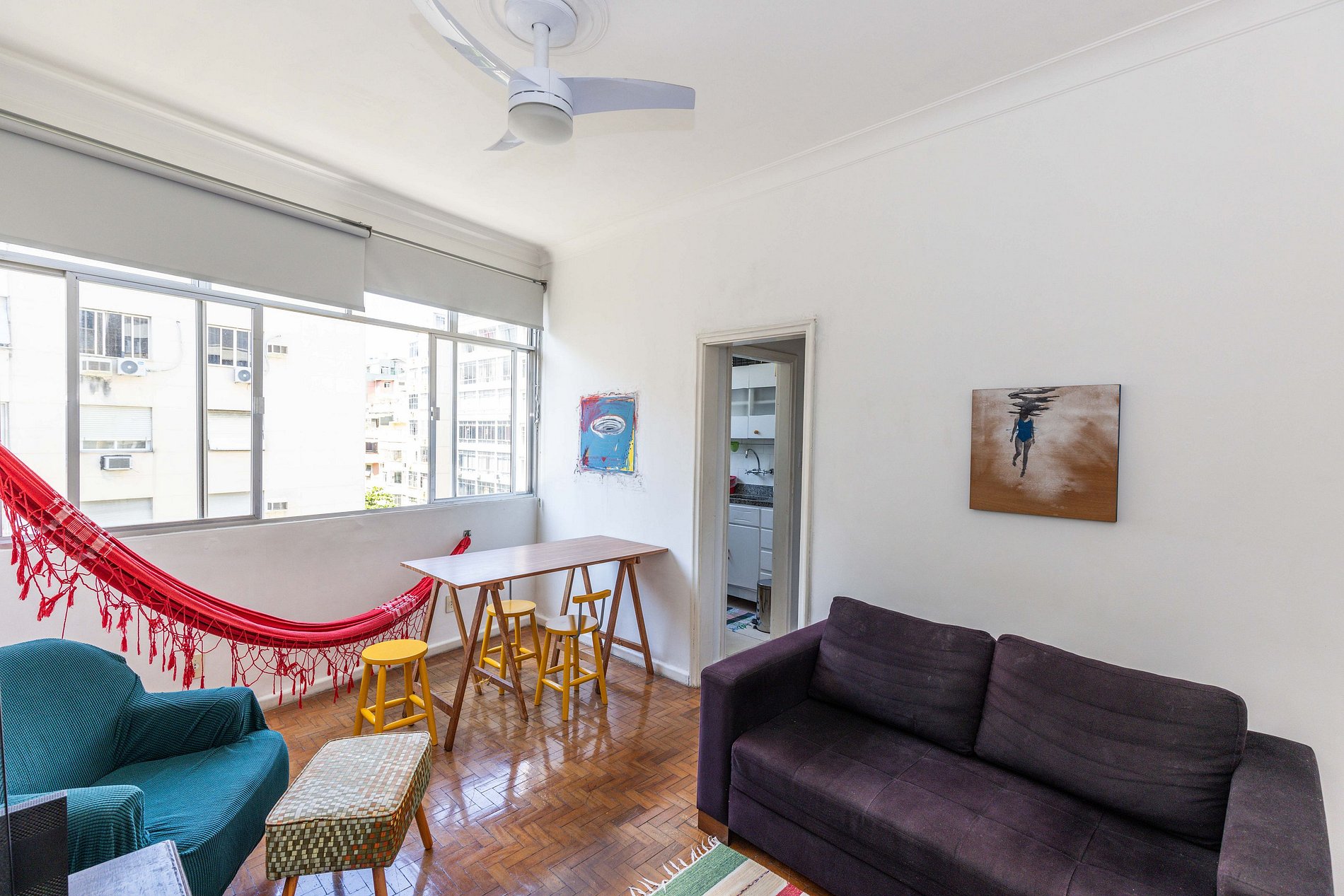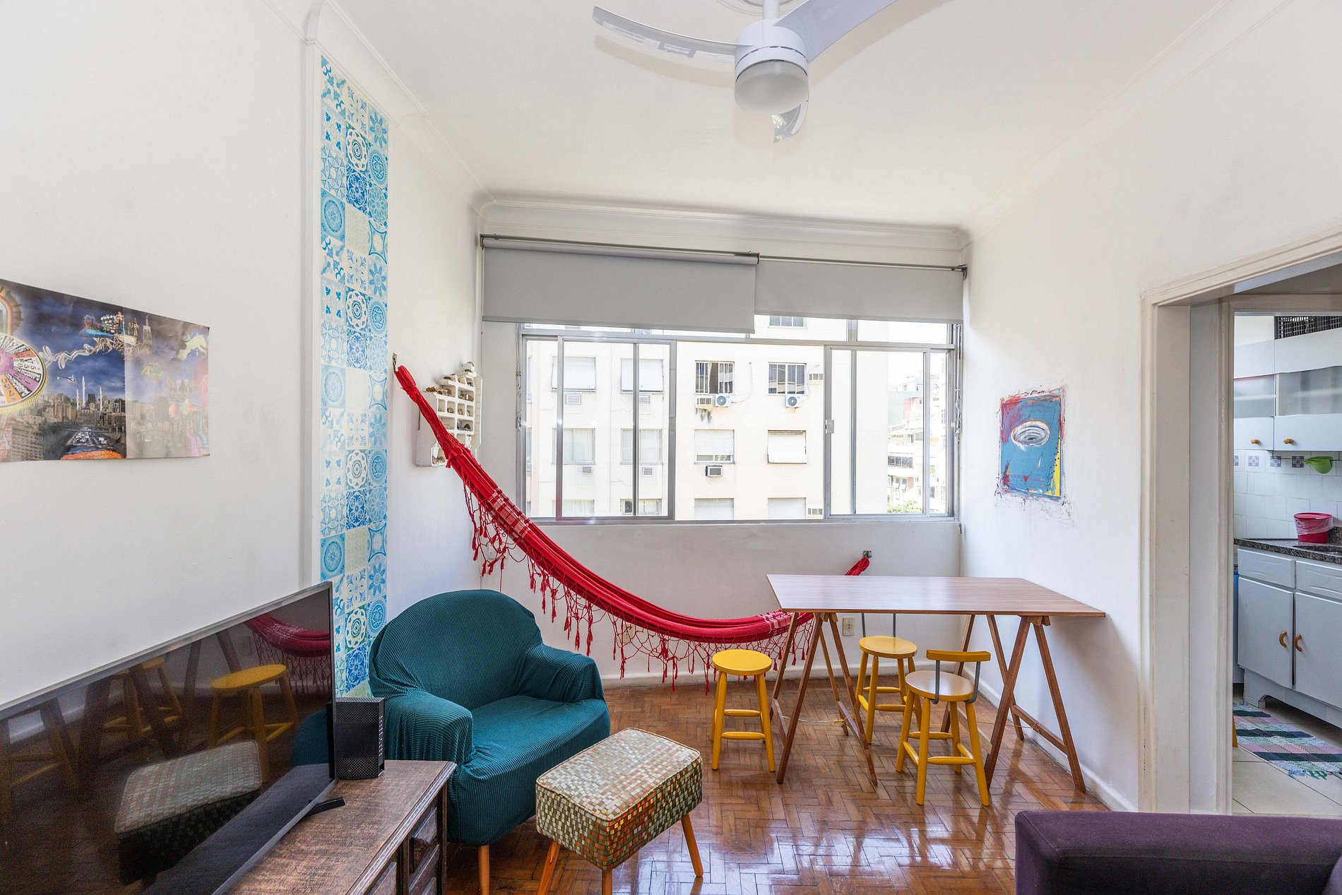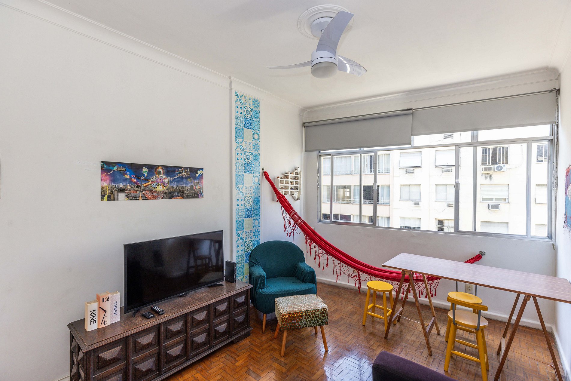 Charmoso apartamento em Copacabana com sala iluminada, rede aconchegante, mesa para 4, TV de 40 polegadas e sofá-cama. Possui cozinha compacta e equipada, banheiro arejado e um quarto encantador com vista para a Mata Atlântica e o mar. Próximo à praia, metrô e comércio farto. Acomoda até 4 hóspedes mas, para maior conforto, recomendamos estadia de até 2 pessoas. Leiam na sequência a descrição completa e as regras da casa para ter certeza que este espaço é mesmo perfeito para suas necessidades.