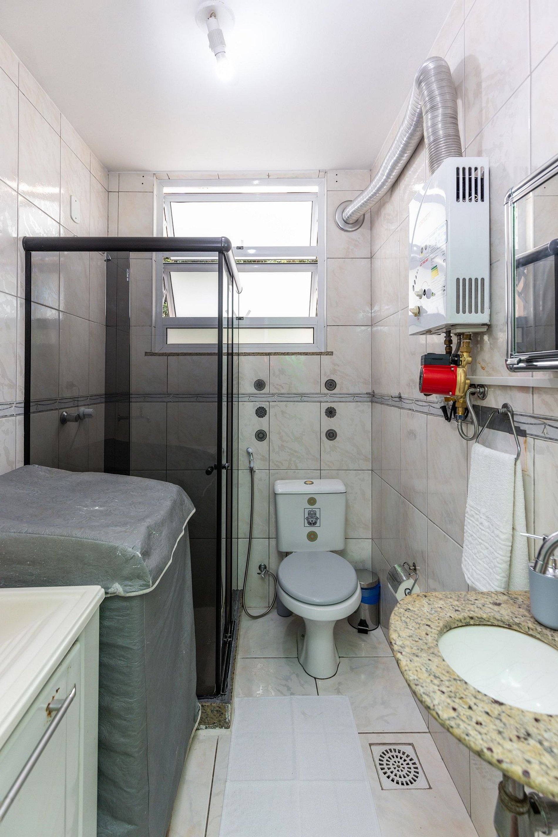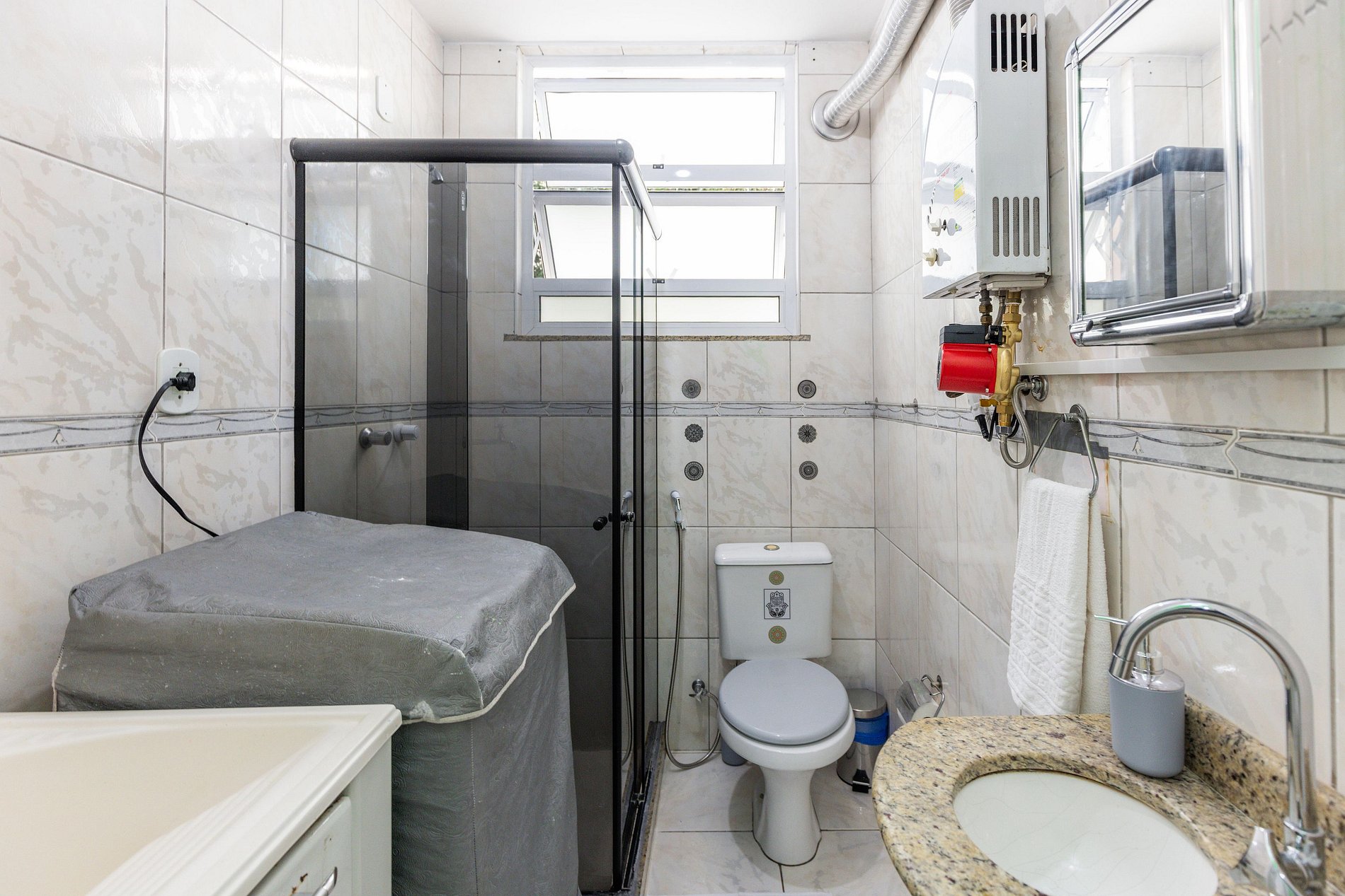 -> Banheiro completo, com máquina de lavar e tanque integrados.